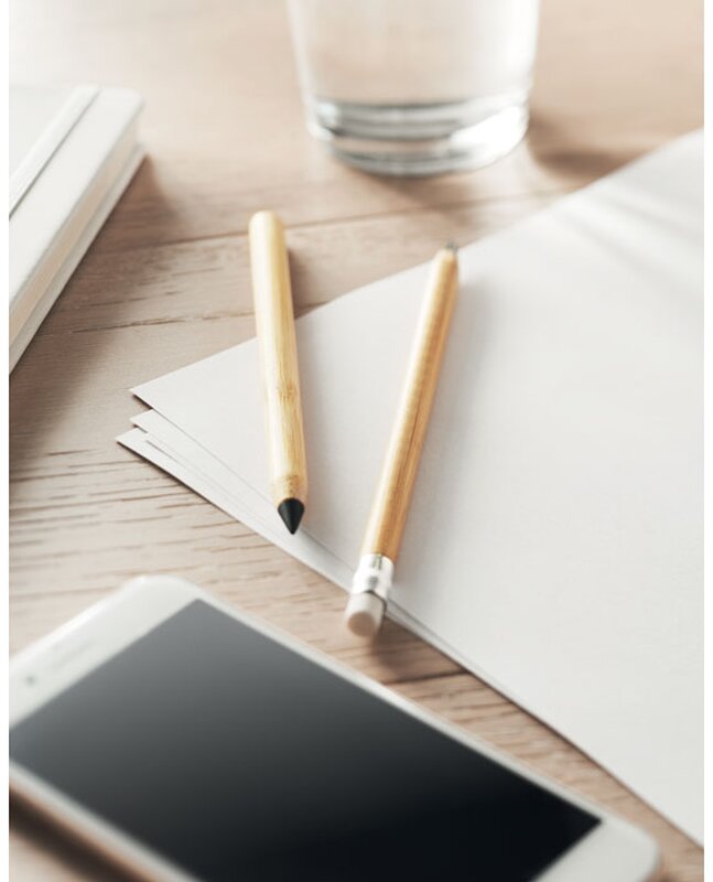Bambusové pero se speciálním hrotem bez inkoustu s dlouhou životností a papírovým uzávěrem. Pero oxiduje papír hrotem z kovové slitiny. To způsobí, že tužka píše, aniž by v ní byl inkoust nebo se opotřebovávala jako grafitové tužky.