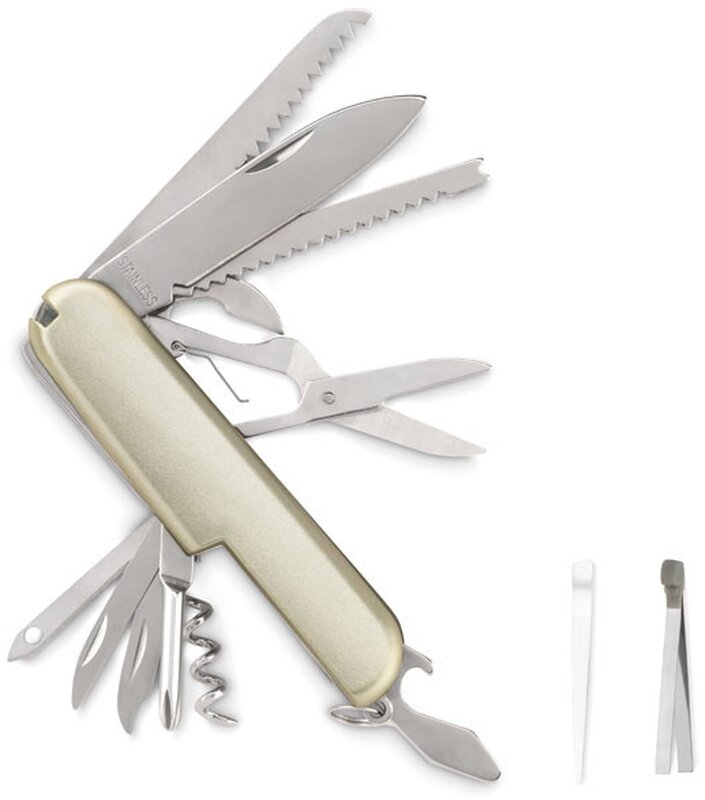 Multifunkční kovový kapesní nůž s ABS povrchem a celkem 13ti funkcemi.