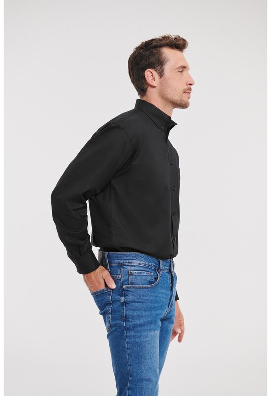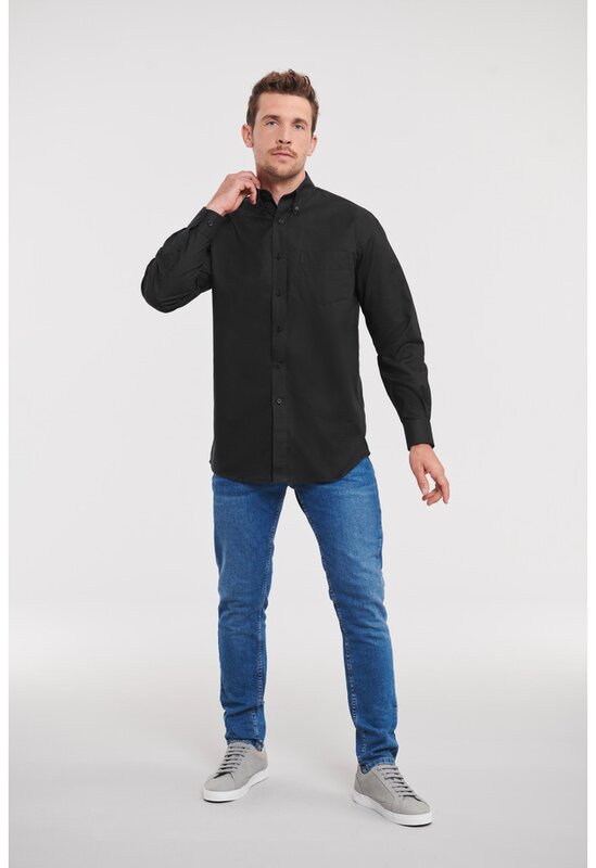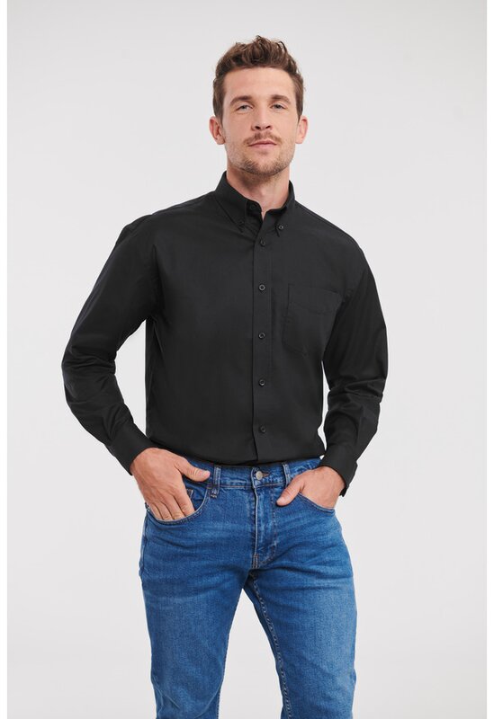 Pánská košile s dlouhým rukávem 932, RUSSELL Oxford Černá 024.657