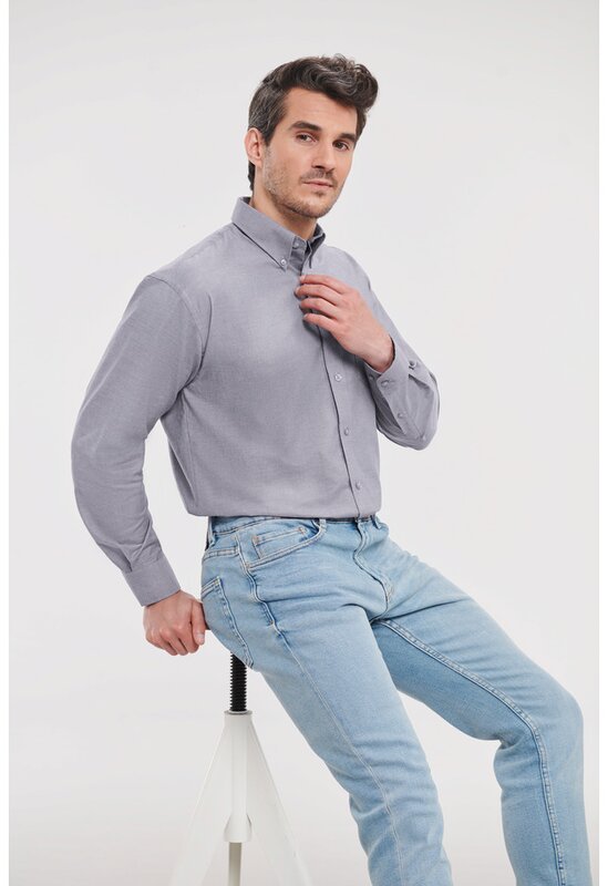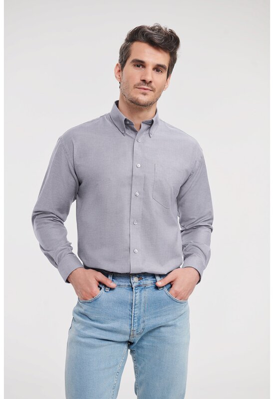 Pánská košile s dlouhým rukávem 932, RUSSELL Oxford Stříbrná 024.657