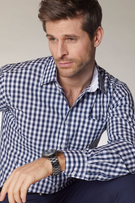 Pánská košile s dlouhým rukávem CHECKED JN617 Námořnická modrá-bílá 003.801