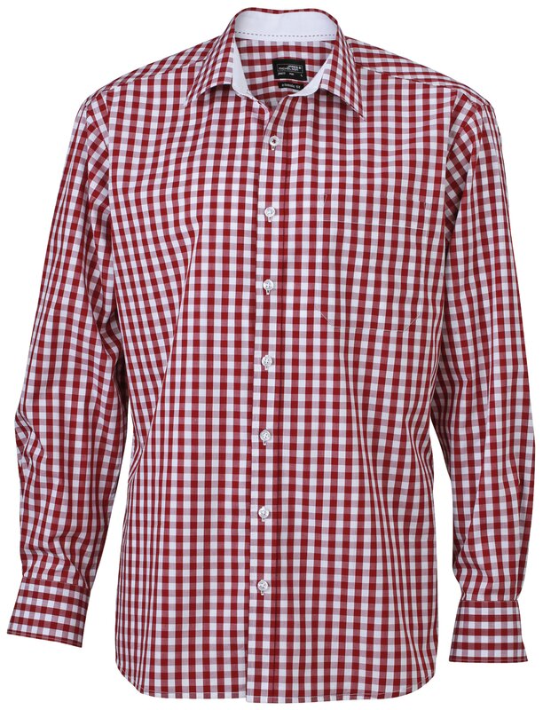 Pánská košile s dlouhým rukávem CHECKED JN617 Bordó-bílá 003.801