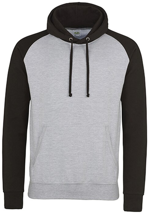 Pánská mikina s kontrastními raglanovými rukávy, kapucí a klokaní kapsou.