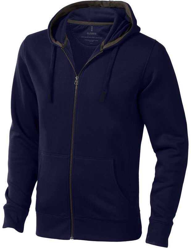 Pánská mikina ARORA s kapucí a zipem v celé délce. Mikina má 2x2 žebrový úplet manžetek, spodního lemu a bočních panelů, klokaní kapsu. Pánský a dámský model se zdrhovadlem v kapuci. Podšívka single jersey uvnitř kapuce. Sedlo ve shodné tkanině. Hedvábná lemovka výstřihu. Logo tištěné v barvě na zádech. Postříbřená očka s gravírovaným logem. Materiál: úplet - 80% bavlna a 20% polyester. Z rubu česaný materiál. Gramáž mikiny je 300 g/m².