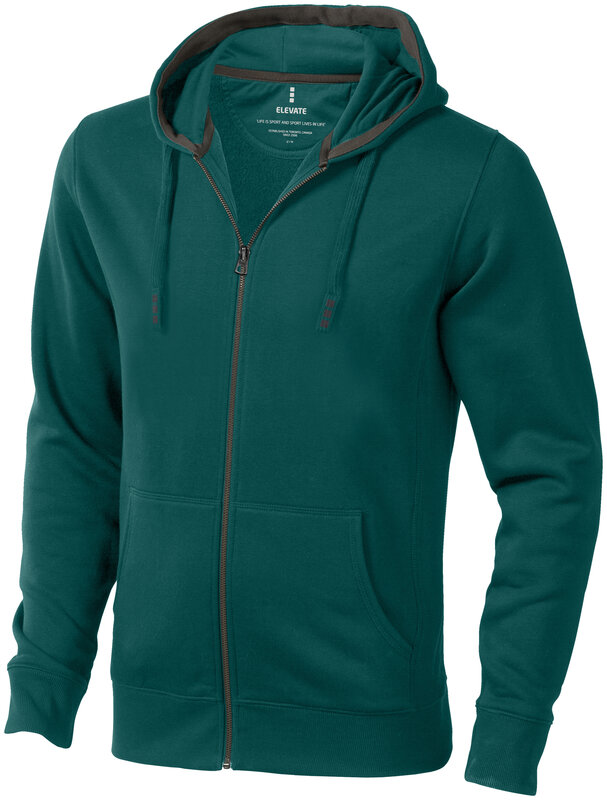 Pánská mikina ARORA s kapucí a zipem v celé délce. Mikina má 2x2 žebrový úplet manžetek, spodního lemu a bočních panelů, klokaní kapsu. Pánský a dámský model se zdrhovadlem v kapuci. Podšívka single jersey uvnitř kapuce. Sedlo ve shodné tkanině. Hedvábná lemovka výstřihu. Logo tištěné v barvě na zádech. Postříbřená očka s gravírovaným logem. Materiál: úplet - 80% bavlna a 20% polyester. Z rubu česaný materiál. Gramáž mikiny je 300 g/m².
