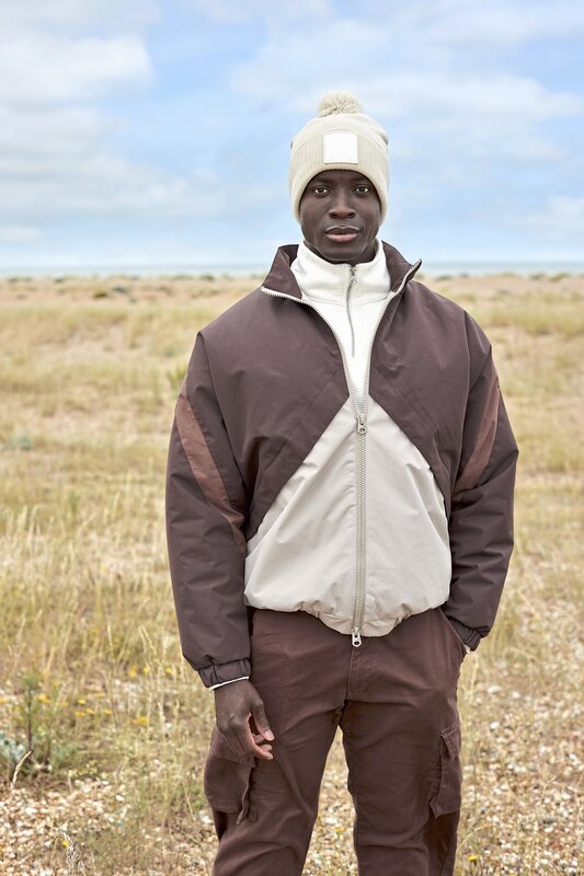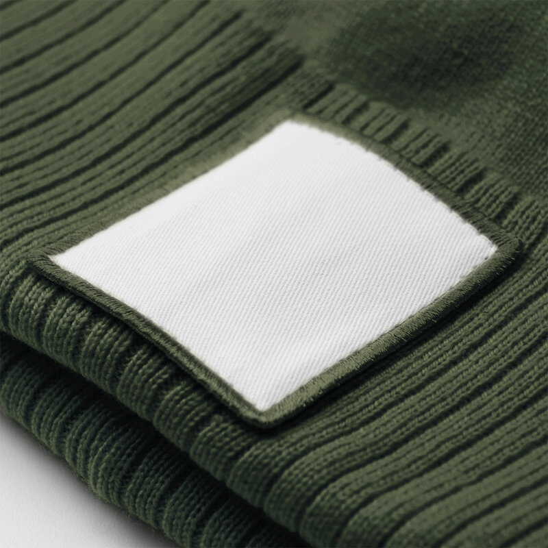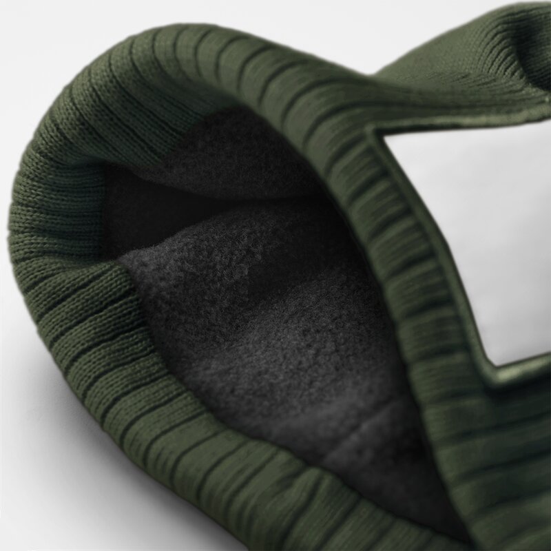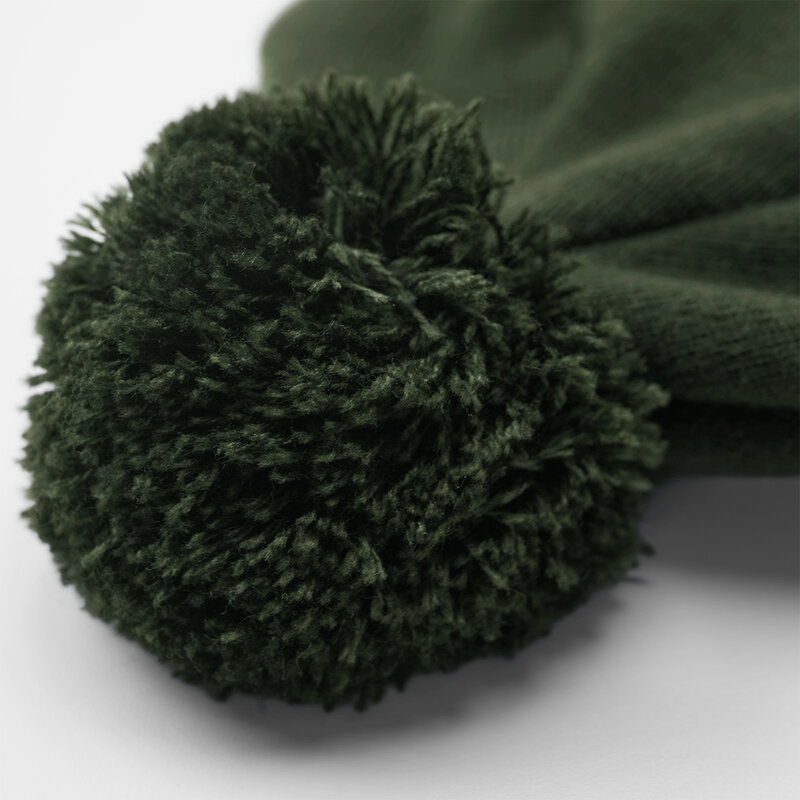 Pánská teplá čepice s podšivkou z mikrofleecu, nášivkou z balvněného kepru a bambulí.