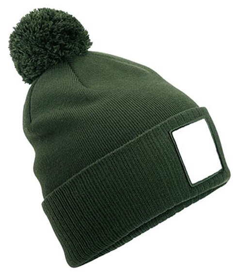 Pánská pletená čepice Patch Pompon B338R Olivově zelená-bílá 051.222