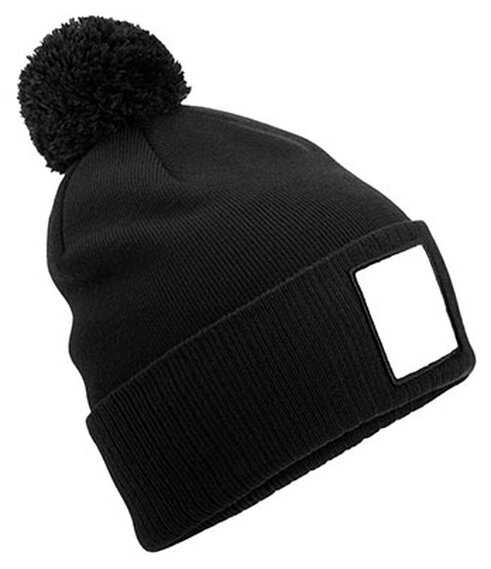 Pánská teplá čepice s podšivkou z mikrofleecu, nášivkou z balvněného kepru a bambulí.