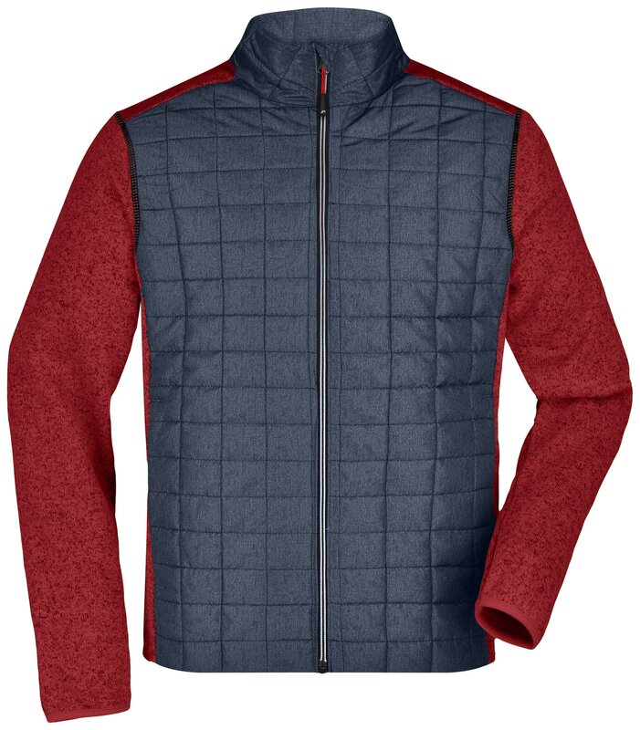 Pánská prošívaná bunda s fleecovými rukávy JN742 Červený melír-antracitový melír 021.898