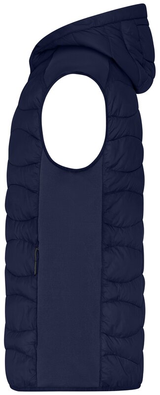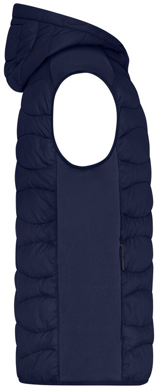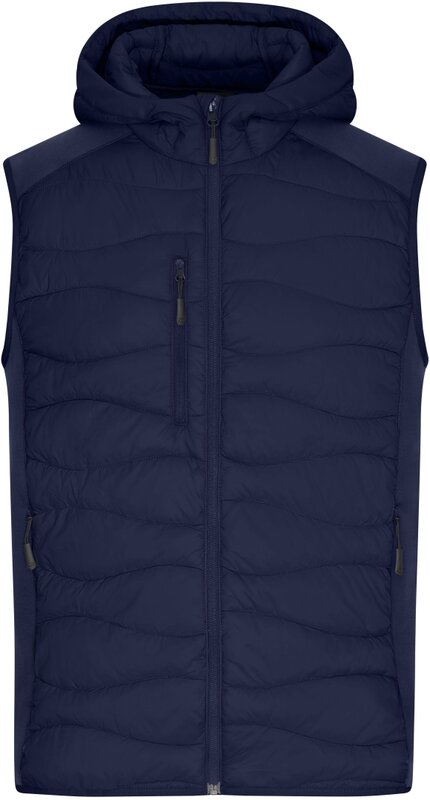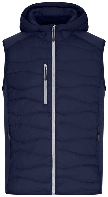 Pánská sportovní vesta s kapucí a prošíváním, Prošívaný je přední a zadní díl a kapuce, Na bocích strečový fleece, Zip po celé délce, ochrana brady, Náprsní kapsa a boční kapsy na zip, 2 vnitřní kapsy, Velmi teplá díky výplni sorona®AURA, Značkové zipy - YKK