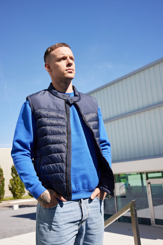 Pánská prošívaná a zateplená vesta, tkanina je snadno udržovatelná (z recyklovaného polyesteru). Díky BIONIC-FINISH®ECO odpuzuje vodu a nečistoty. Velmi teplá díky výplni sorona®AURA, Zip po celé délce (Značkové zipy - YKK), límec stojáček s drukem uprostřed. 2 boční kapsy na zip, vnitřní kapsa na zip.
