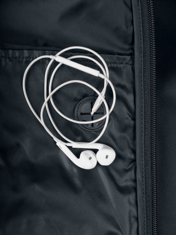 Bunda je lehce polstrovaná fleecovou podšívkou, která poskytuje tepelný komfort, aniž by omezovala pohyb. Praktické detaily zahrnují otvory pro palce, které udržují rukávy na místě, kapsu na rukávu se zipem pro drobnosti, dvě boční kapsy na zip a také vnitřní přístup pro sluchátka.