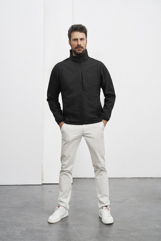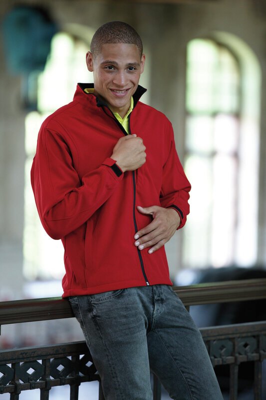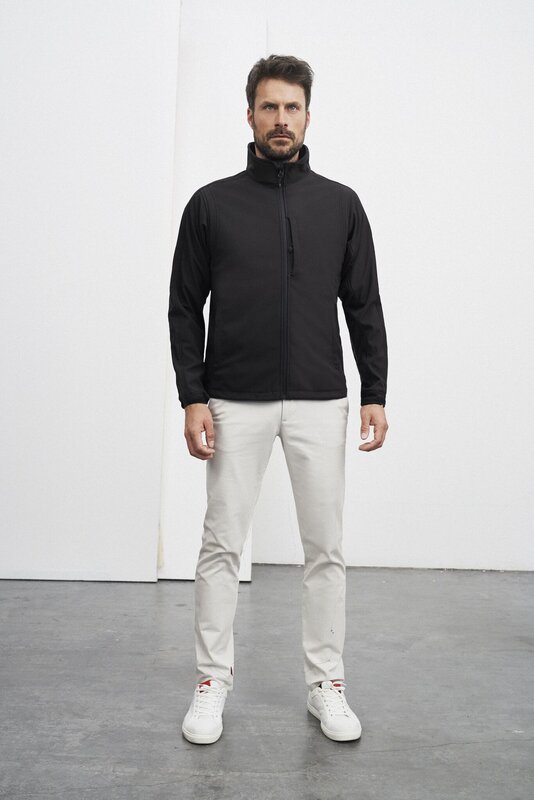 Trendy pánská softshellová bunda James & Nicholson vyrobená z 95% polyesteru a 5% elastanu.
