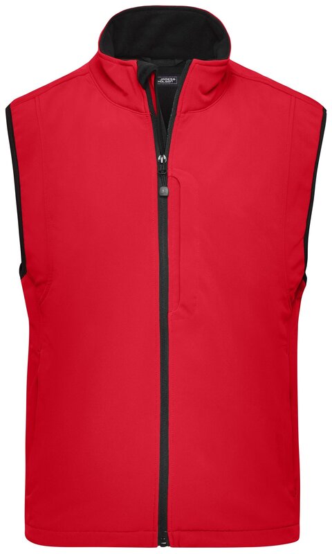 - Funkční pánská softshellová vesta James & Nicholson vyrobená z 95% polyesteru a 5% elastanu.