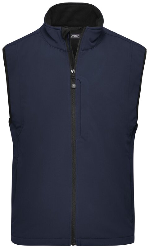 - Funkční pánská softshellová vesta James & Nicholson vyrobená z 95% polyesteru a 5% elastanu.