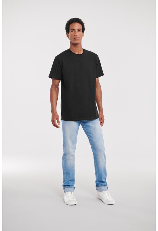 Pánské kvalitní tričko s klasickým střihem (Regular Fit) a vyšší gramáží. Kulatý výstřih s krátkým rukávem. Zpevněné švy na ramenou, bez bočních švů. Materiál: 100% bavlna. Gramáž: 215 g/m² (Bílá: 210 g/m²). Lze prát ve 40°, Vhodné do sušičky (bez potisku).