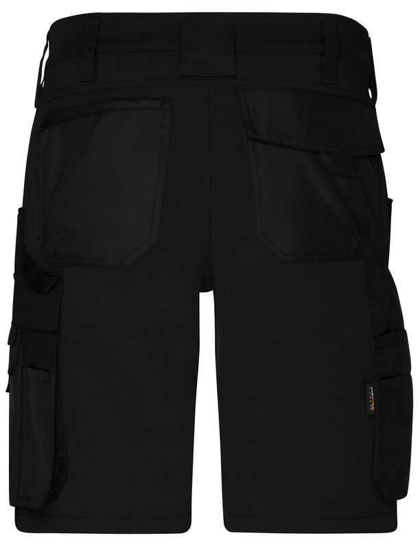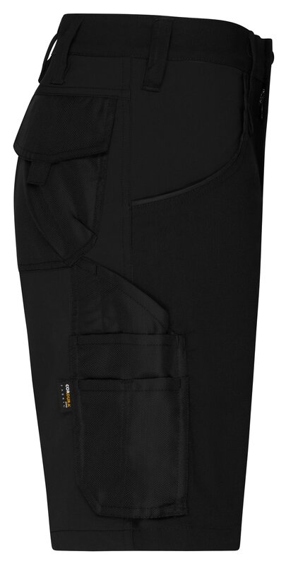 Specializované pracovní kraťasy s elastickými vsadkami a funkčními detaily. Slim střih. Robustní a odolný mix materiálů - recyklovaný polyester a bio-bavlna s elastanem. Velmi pohodlné na nošení díky elastickým doplňkům. Pas s poutky na pásek. Kapsy a otvory vyztužené CORDURA®. Na namáhaných místech trojitý prošívaný šev odolný proti roztržení. 1 kapsa na zip (značkové zipy - YKK) + různé kapsy a poutka na nářadí, mobilní telefon, pravítko atd.