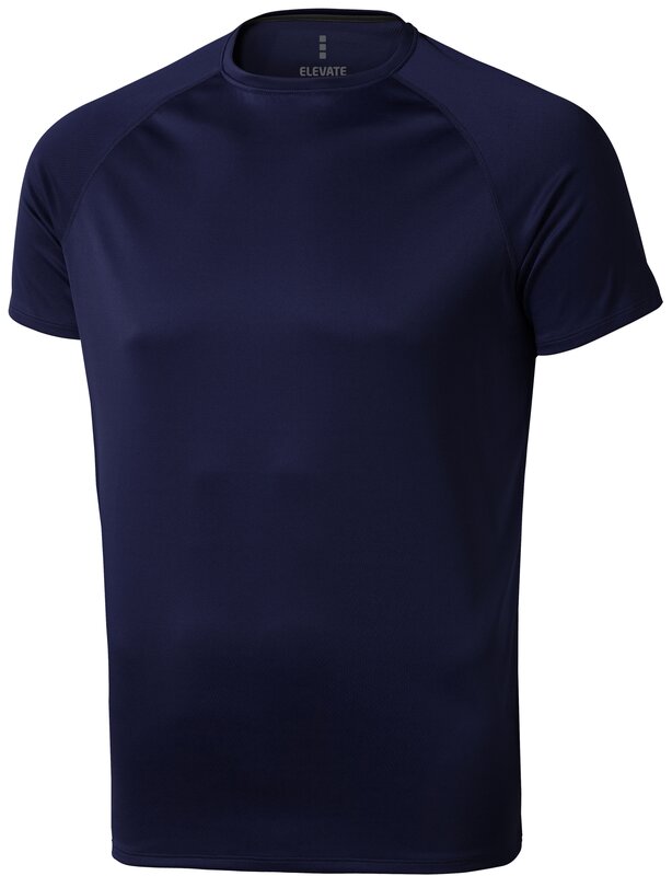 Pánské triko s krátkým rukávem NIAGARA. Tričko má reflexní potisk loga na zádi, jemný plochý steh na raglánech, dvoujehlové stehování na rukávu a spodním lemu, hedvábnou lemovku výstřihu. Síťovina ze 100% polyesteru s povrchovou úpravou odvádějící vlhkost - systém CoolFit. Gramáž je 145 g/m².