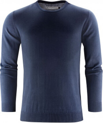 Pánský pletený svetr s kulatým výstřihem, který má pružné manžety a spodní lem, také dvojitý lem výstřihu.