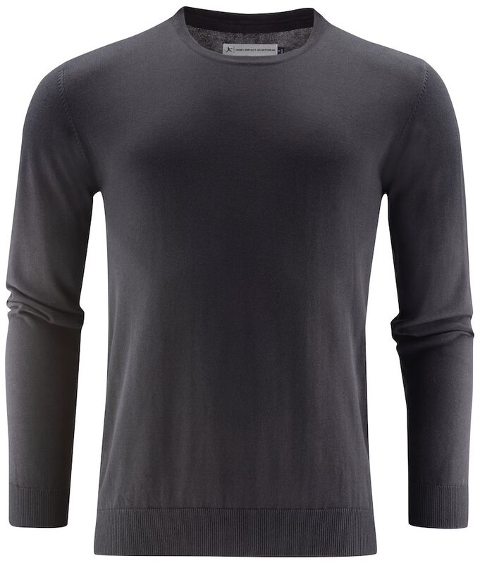 Pánský pletený svetr s kulatým výstřihem, který má pružné manžety a spodní lem, také dvojitý lem výstřihu.