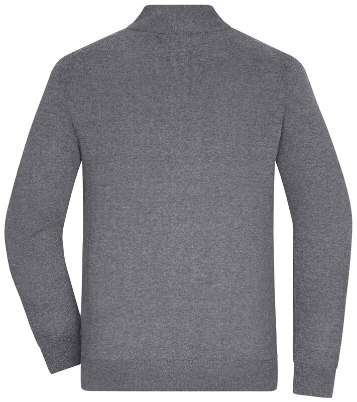 Pánský elegantní svetr Zip-Cardigan se zipem po celé délce (značkový zip- YKK). Lehký úplet, stojací límec. Materiál: 100% bavlna. Gramáž: 260 g/m².