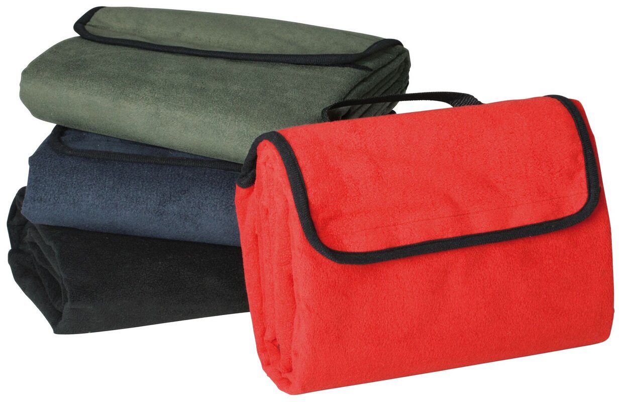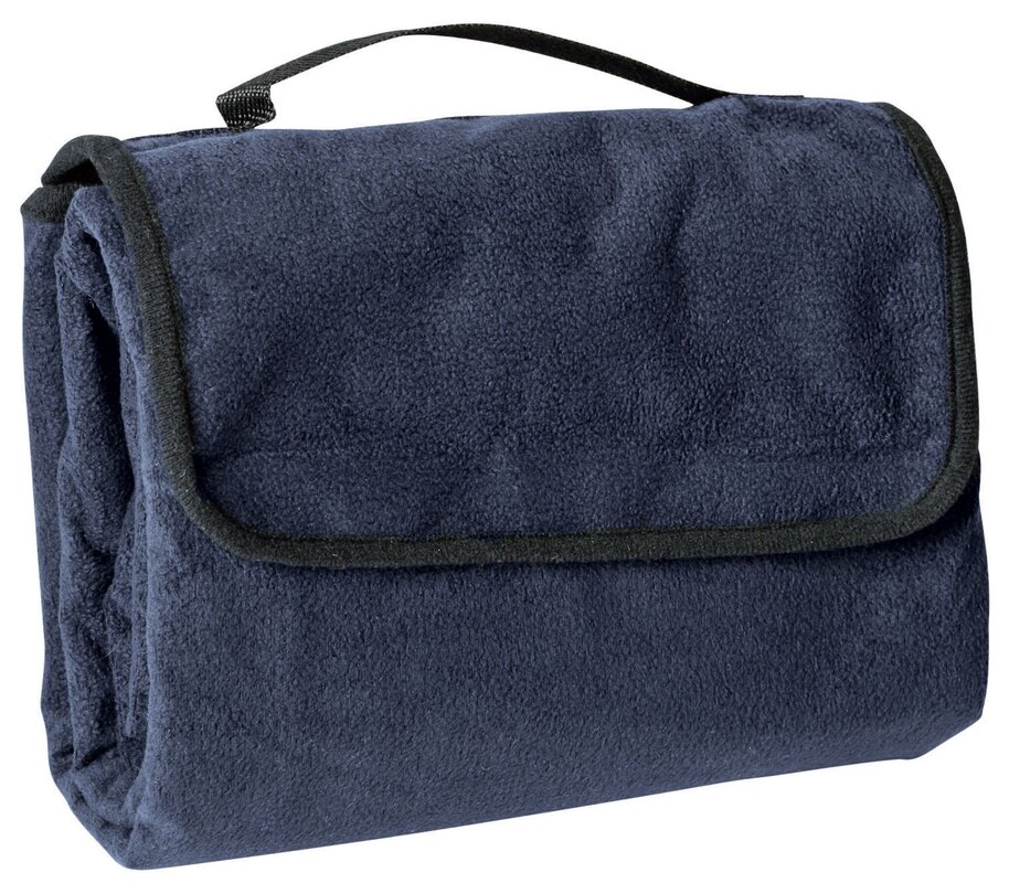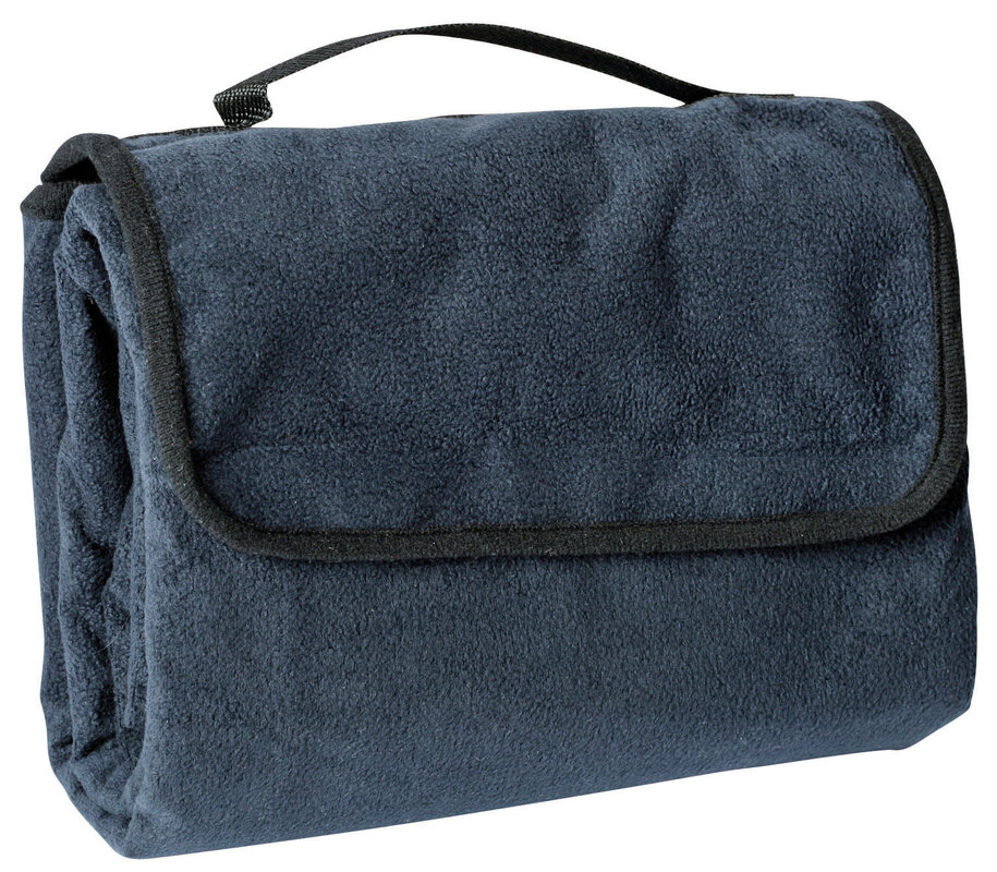 Přenosná měkká fleecová deka James & Nicholson na piknik. Vodotěsná spodní strana s PVC. Deka se dá se sbalit do úhledného balíčku s rukojetí.