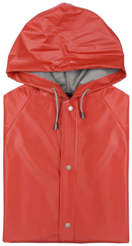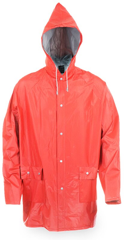 Odolná pláštěnka s kapucí vyrobená z PVC se speciální žáruvzdornou povrchovou úpravou. Praktický střih s pohodlným zapínáním na knoflíky a dvěma prostornými předními kapsami pro uložení drobností.