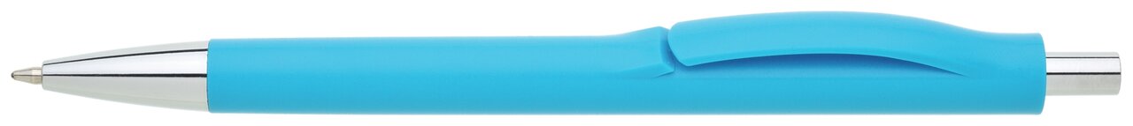 Propiska LINEA má zajímavě řešený klip a stříbrné doplňky, modře píšící náplň. Lze použít DIGITÁLNÍ UV TISK