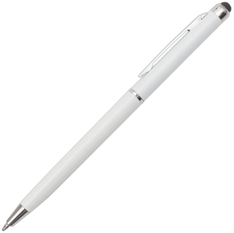 Propiska v hladkém jednoduchém designu z plastu v kombinaci s kovovým klipem. Součástí je dotyková koncovka pro obrazovky mobilu či tabletu. Pero má modrou náplň.