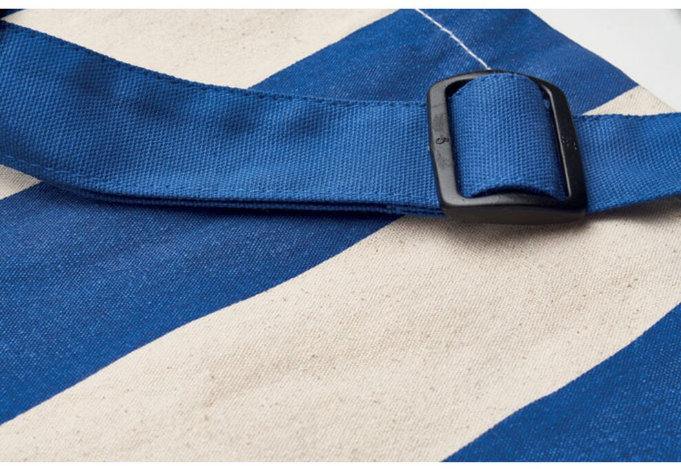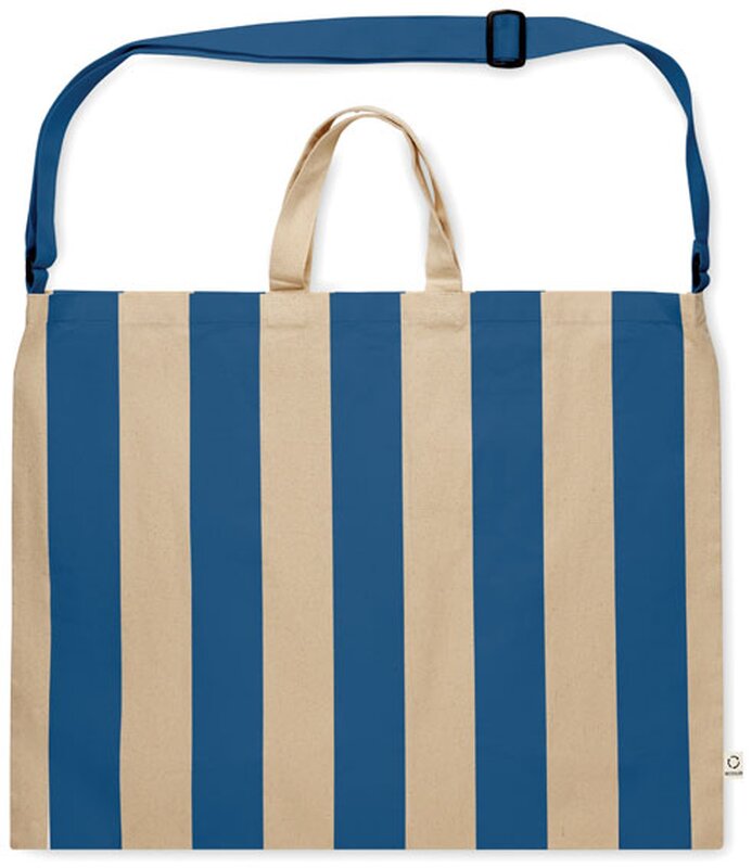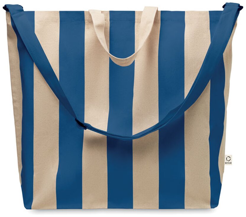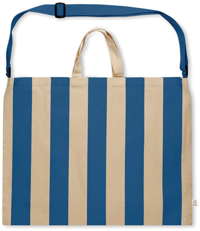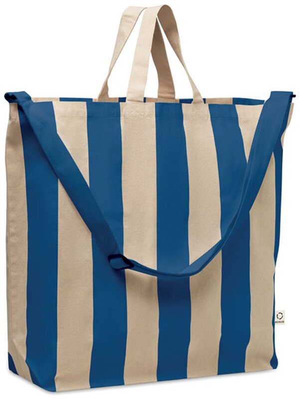 Stylová a prostorná taška z recyklovaných materiálů, která nabízí kombinaci praktičnosti a udržitelnosti. Díky pruhovanému designu a odolné 280g tkanině je ideální pro každodenní využití v letní sezóně. Vnitřní kapsa chrání drobnosti, nastavitelný ramenní popruh a pevná krátká ucha umožňují pohodlné nošení v ruce i přes rameno.