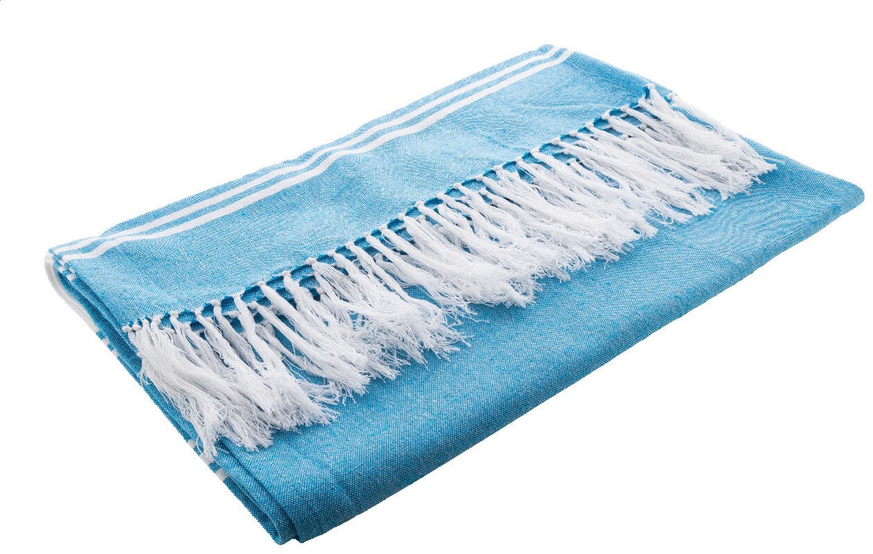 Dvoubarevný pruhovaný plážový ručník pareo ze 70% bavlny a 30% polyesteru. 210 g/m².