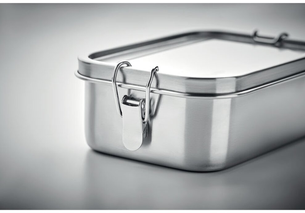 Praktická obědová krabička z nerezu s těsnícím víkem má objem 750 ml.