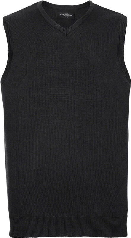Pletená vesta s výstřihem do V, Pas a manžety s elastanem pro dlouhodobé držení tvaru, snadná péče, rychleschnoucí, pratelné na 40°, lze sušit v sušičce 275g/m², 50% bavlna, 50% polyakryl CottonBlend™