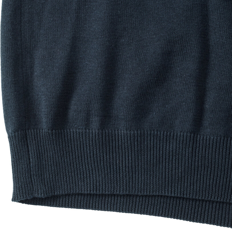 Pletená vesta s výstřihem do V, Pas a manžety s elastanem pro dlouhodobé držení tvaru, snadná péče, rychleschnoucí, pratelné na 40°, lze sušit v sušičce 275g/m², 50% bavlna, 50% polyakryl CottonBlend™