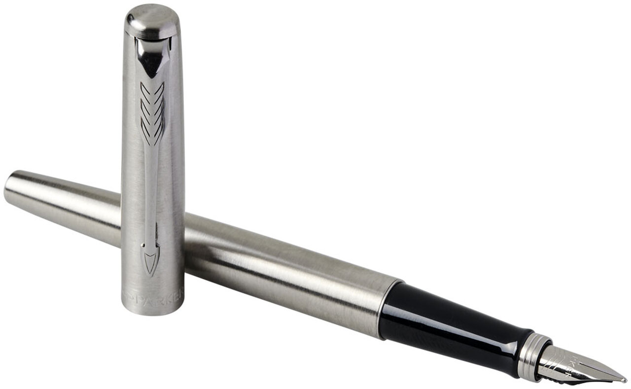 Plnicí pero Parker Jotter představuje moderní interpretaci ikonického designu této značky. Jedinečný vzhled tvoří nerezový hrot, chromované tělo a víčko z nablýskané nerezové oceli doplněné o sponu ve tvaru šipky. Pero dodáváme v luxusní dárkové krabičce značky Parker. Velikost hrotu: 0,5 mm. Barva náplně: modrá.