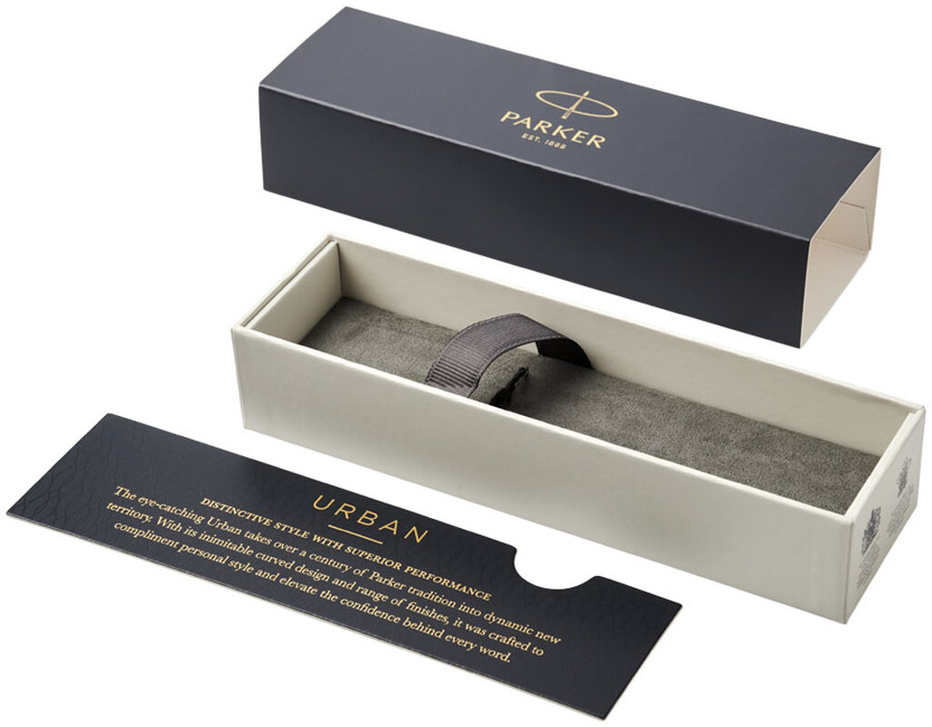 Plnící pero Parker URBAN s výrazným stylem a pozoruhodným výkonem. Dodává se v dárkové krabičce. Rozměr krabičky: 17,5 x 3 x 5 cm. Barva inkoustu: modrá.