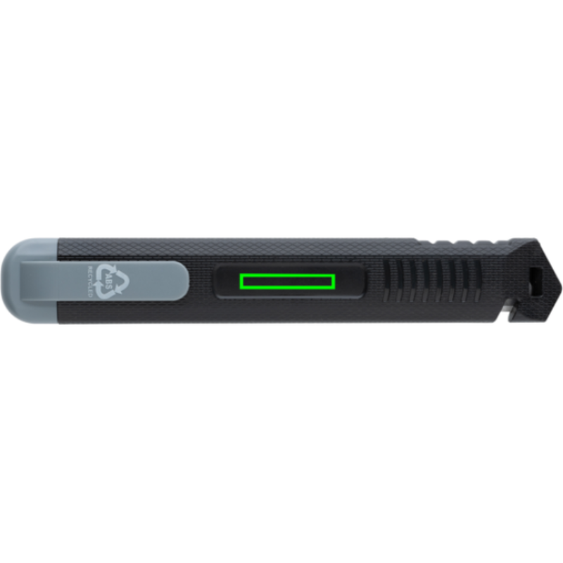 Opakovaně plnitelný nůž s odlamovací čepelí. Obal vyrobený z RCS recyklovaného ABS, čepel z SK4 nerezavějící oceli. Čepel lze po ztupení jednoduše o díl zalomit a získat tím opět ostrou část. Po využítí celé čepele ji lze jednoduše vyměnit a nahradit novou. Balení obsahuje 1 nasazenou a 2 náhradní čepele. Baleno v FSC® kraftové krabičce.