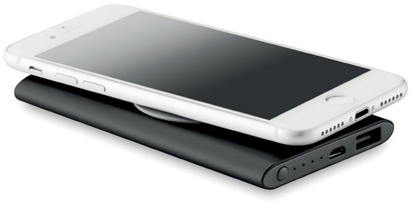 Bezdrátová nabíjecí powerbanka 4000 mAh z hliníku. Obsahuje konektor typu C. Výstup DC5V/1.0A. Kompatibilní s nejnovějšími androidy, iPhone® 8, 8S, X a novější.