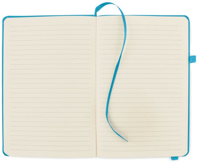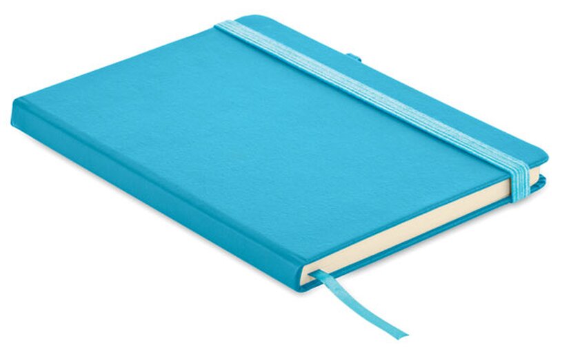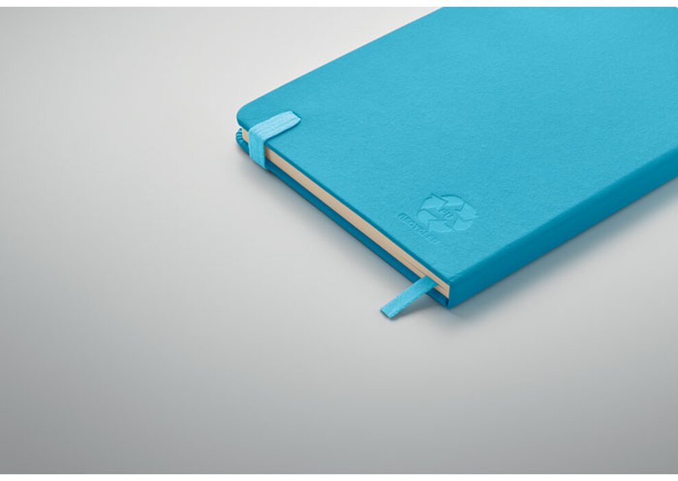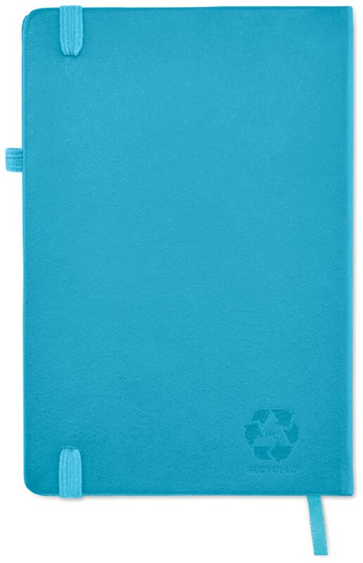 Poznámkový blok ARPU s obalem z recyklovaného PU. Obsahuje 192 linkovaných stran z recyklovaného papíru (96 listů). Barevně odpovídající elastická gumička, záložka a poutko na pero. Velikost A5.
