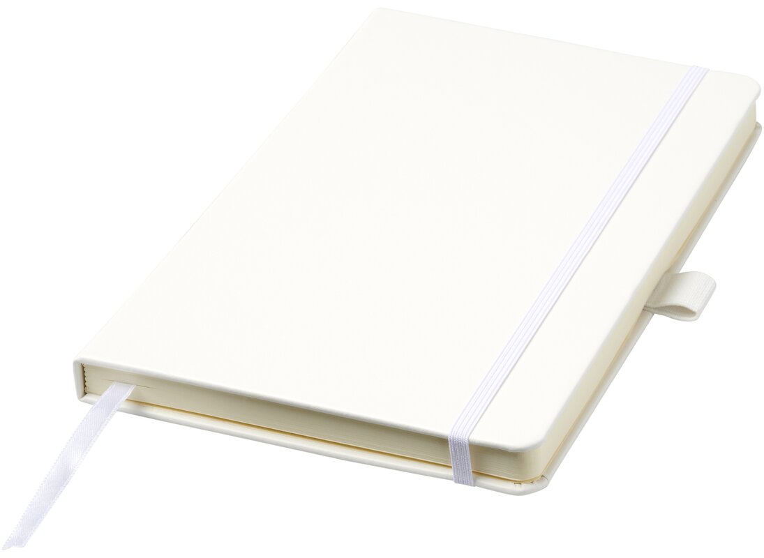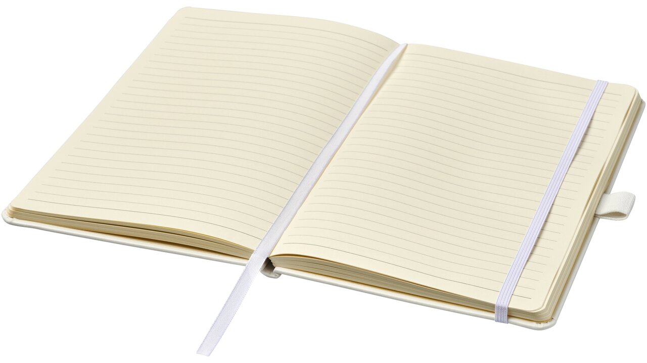 Poznámkový blok NOVA z imitace kůže. Obsahuje 96 linkovaných listů v krémové barvě o hmotnosti 80 g/m2. Velikost A5 (148x210 mm). Nechybí tu ani záložka, elastický pásek, poutko na pero a na zadní straně najdeme papírovou kapsu na poznámky.