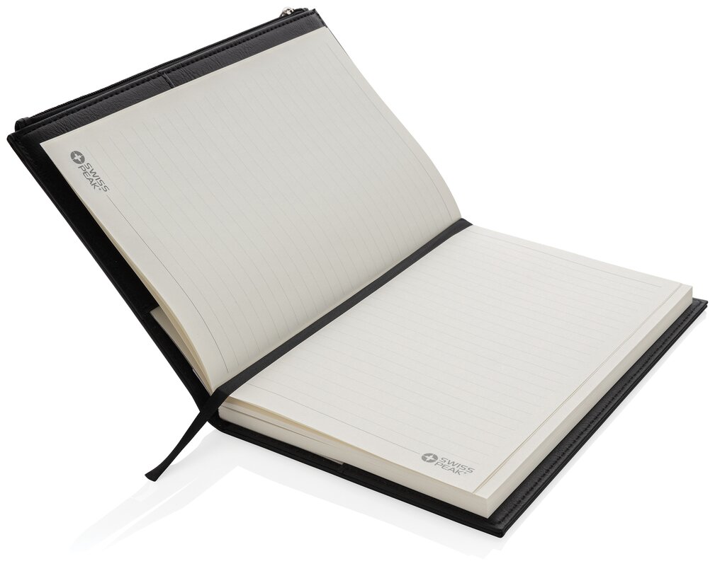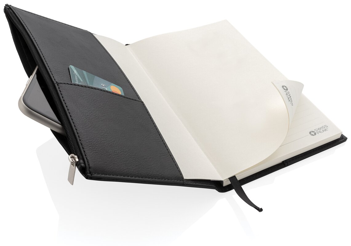 poznámkový blok A5 s obalem z PU a kapsou na zip Swiss Peak Černá 022.780