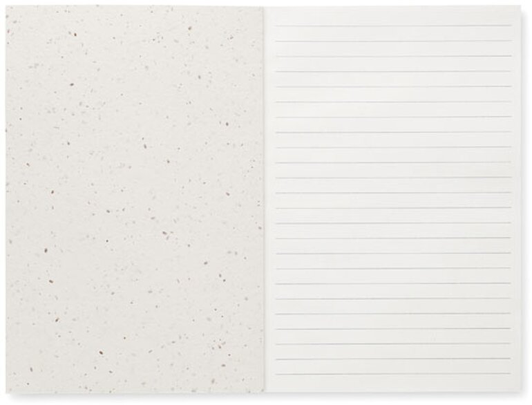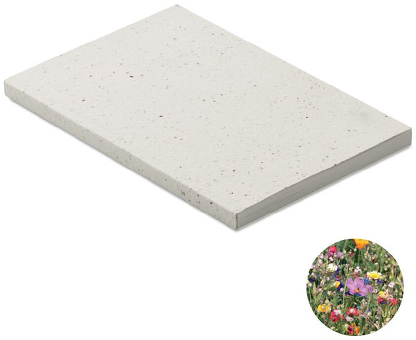Zápisník A5 SEED BOOK s papírovými deskami se semínky lučního kvítí. Obsahuje 200 linkovaných stran z recyklovaného papíru (100 listů).