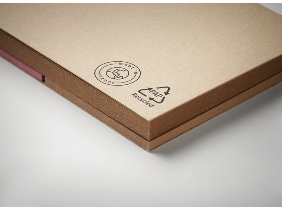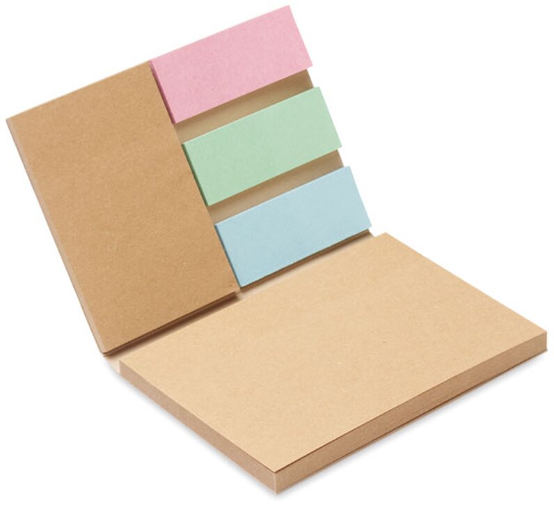 Dvoudílný poznámkový set, který obsahuje samolepicí bločky (25 listů) a 3 různobarevné oddělovače. Obal je vyroben z recyklovaného papíru a výrobek pochází z EU.