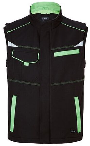 Pracovní softshellová vesta LEVEL 2 JN852, kolekce COLOUR Černo-limetková 011.179