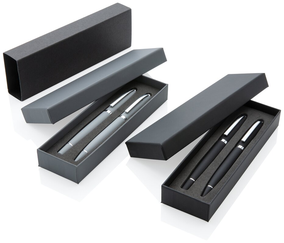 Minimalistický design, černý matný a velmi příjemný povrch na dotek s kvallitním německým inkoustem Dokumental® pro výjimečně komfortní psaní. Kuličkové pero pro až 1 200 m textu, roller pro 400 m textu. Zabaleno v pasující tmavé dárkové krabičce.