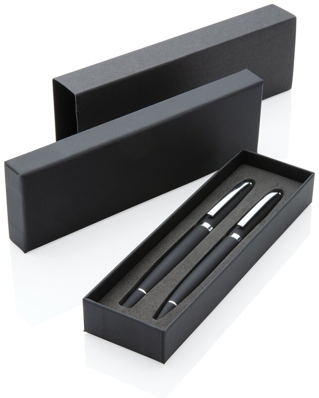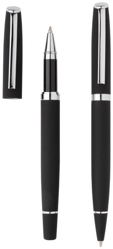 Minimalistický design, černý matný a velmi příjemný povrch na dotek s kvallitním německým inkoustem Dokumental® pro výjimečně komfortní psaní. Kuličkové pero pro až 1 200 m textu, roller pro 400 m textu. Zabaleno v pasující tmavé dárkové krabičce.