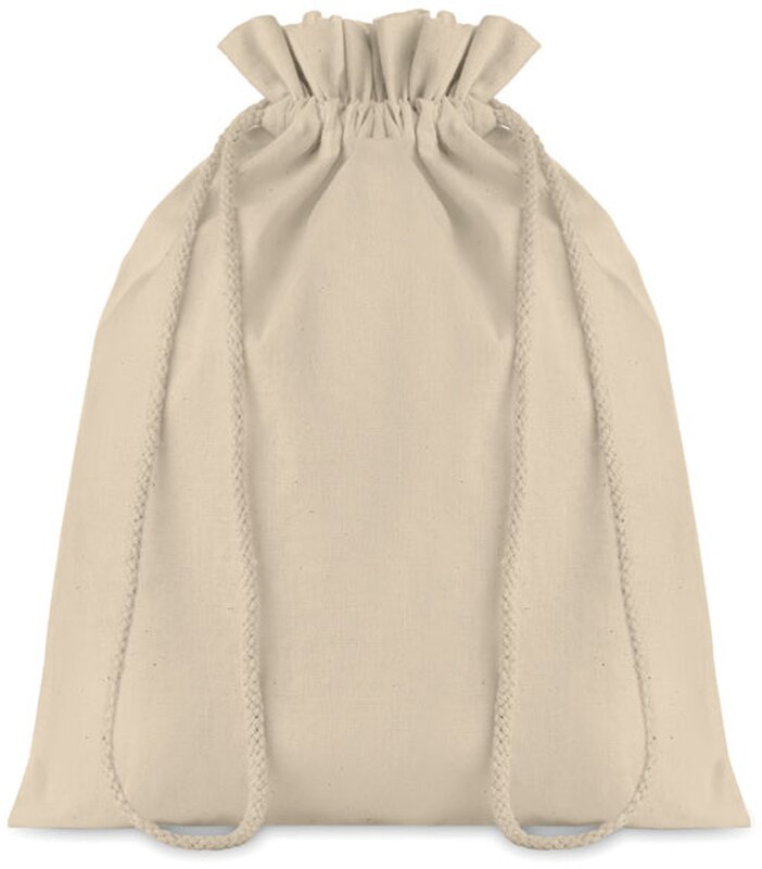 Střední bavlněný pytlík se stahovací šňůrkou. Rozměry přibližně 25x32 cm.