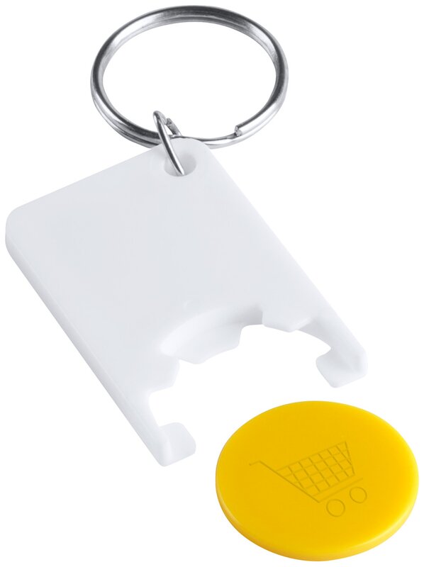 Plastový přívěšek na klíče s žetonem do nákupních vozíků.