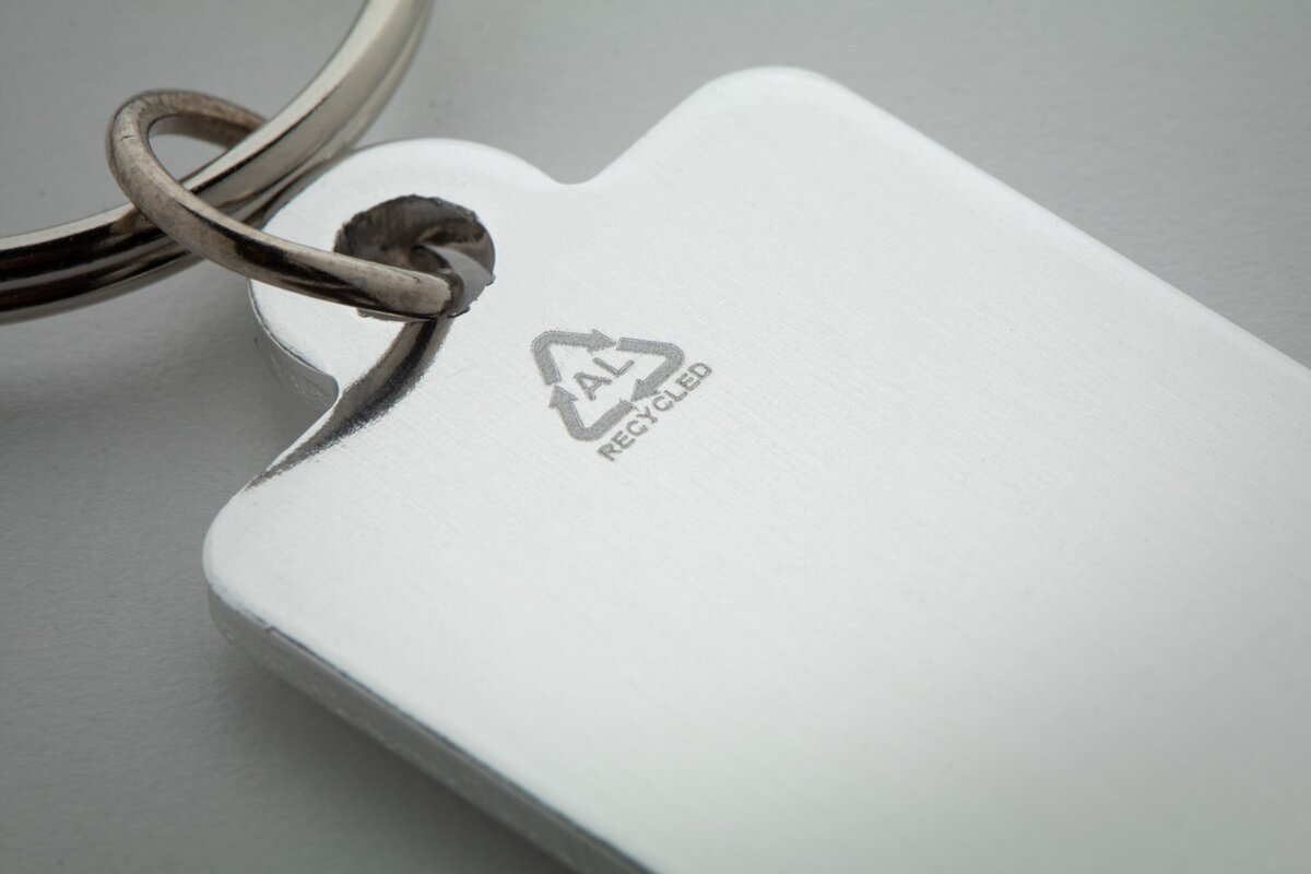 Přívěšek na klíče z recyklovaného hliníku s mincí do nákupního vozíku.
