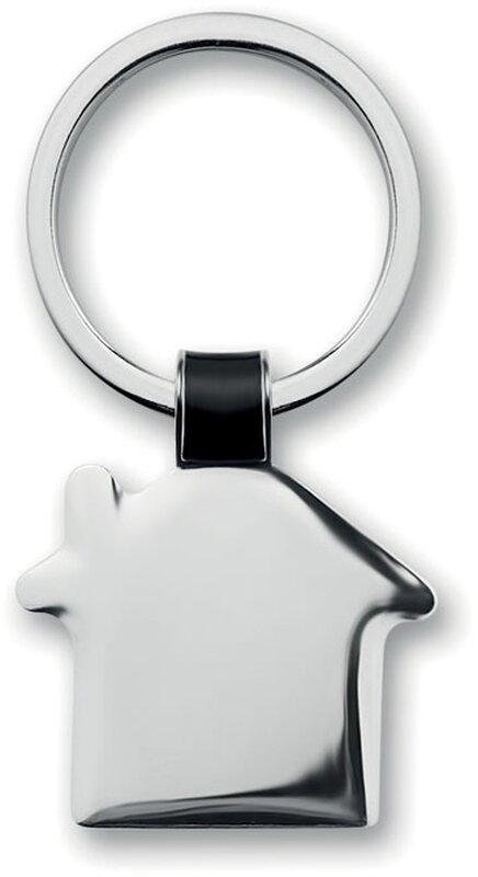Přívěšek na klíče v oblíbeném tvaru domečku s lesklou niklovou úpravou.